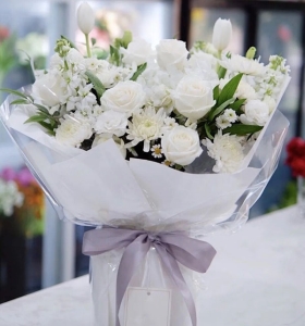玫瑰、菊花、配花适量<祭拜花束>